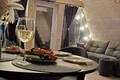 Обеденная зона укомплектована мебелью, необходимой посудой для приготовления пищи и бытовой техникой: варочная панель, микроволновая печь, холодильник, тостер, чайник.